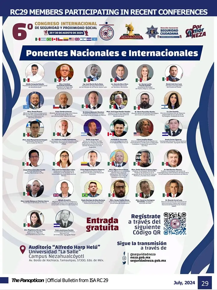 El 6to Congreso Internacional de Seguridad y Proximidad Social se llevó a cabo los días 28 y 29 de agosto de 2024 en el municipio de Nezahualcóyotl, Estado de México. Este evento reunió a expertos, académicos y profesionales para analizar y compartir estrategias sobre seguridad ciudadana, enfocándose en el presente y futuro de la misma. Este espacio se convirtió en pieza clave para el desarrollo de iniciativas en materia de seguridad y proximidad social.